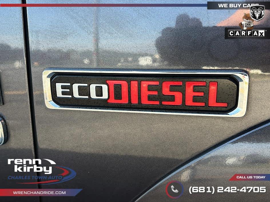 ENGINE: 3.0L V6 TURBO DIESEL Selective Catalytic Reduction (Urea), 3.0L Diesel Badge, 800 Amp Maintenance Free Battery, Maximum Duty Engine Cooling, Next Generation Engine Controller, 3.55 Rear Axle Ratio, 230 Amp Alternator, 26 Gallon Fuel Tank, GVWR: 6,950 lbs, QUICK ORDER PACKAGE 28V LIMITED Engine: 3.0L V6 Turbo Diesel, Transmission: 8-Speed Auto (8HP70), Luxury Front & Rear Floor Mats, Chrome Bodyside Molding, Rain Sensitive Windshield Wipers, Wood/Leather Wrapped Steering Wheel, Ram 1500 Badge, Chrome Ram Badge, Laramie Limited Grille, Locking Lug Nuts, Leather Wrapped Grab Handle, Body Color Front Fascia, Body Color Rear Bumper w/Step Pads, Keyless GO®, Chrome Belt Moldings, Delete Tow Hooks, Laramie Limited Group, Limited Tailgate Applique 4x4, Bright Rear Bumper, Body Color Fender Flares, Bright Front Bumper, Remote Proximity Keyless Entry, Auto High Beam Headlamp Control, Luxury Door Trim Panel, Laramie Limited Cluster, POWER SUNROOF, ANTI-SPIN DIFFERENTIAL REAR AXLE, SINGLE DISC REMOTE CD PLAYER, TRANSMISSION: 8-SPEED AUTO (8HP70).