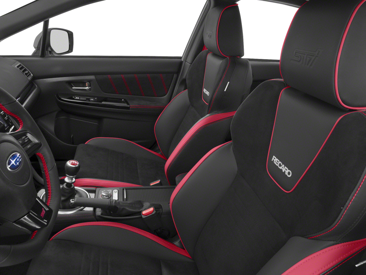 Keyless Access w/Push Button Start, PIN code access, RECARO Performance Design Front Seats, 8-way power drivers seat and front drivers seatback pocket, Rear Bumper Applique, Alloy Wheel Locks, Center Armrest Extension - Black, STI Carbon Fiber Trunk Trim, Auto-Dimming Mirror w/Compass & HomeLink, Cargo Tray.