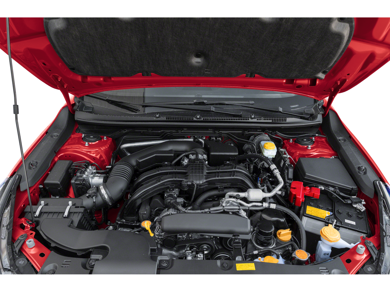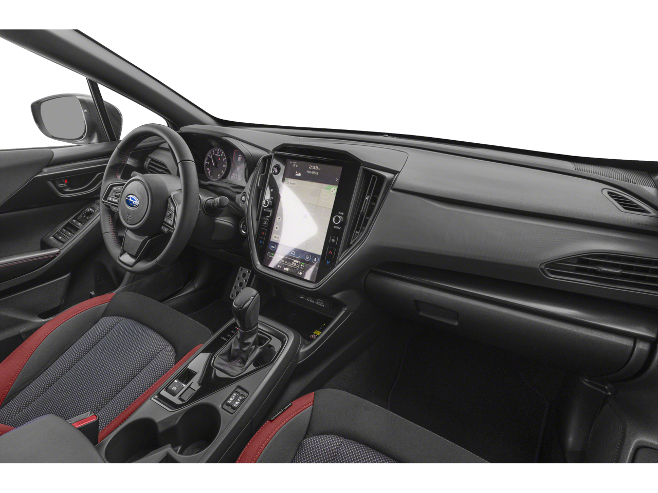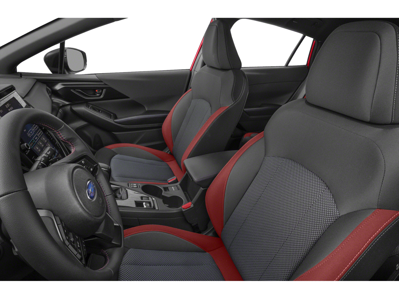 Lane Keeping Assist, Cross-Traffic Alert, Blind Spot Monitor, Child Safety Locks, Electronic Stability Control, Brake Assist, 4-Wheel ABS, 4-Wheel Disc Brakes, Tire Pressure Monitoring System Safety equipment includes Lane Keeping Assist Subaru RS with Pure Red exterior and Black interior features a 4 Cylinder Engine with 182 HP at 5800 RPM*.
